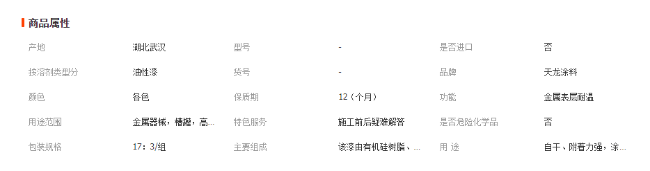 主要組成:該漆由有機(jī)硅樹脂、合成樹脂、耐高溫顏料、有機(jī)溶劑等組成的雙組份或單組份涂料。