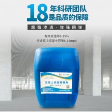 GUX-Z混凝土表面增強劑具有極低的表面張力,能快速滲透至混凝土內(nèi)部,與混凝土中水泥水化的副產(chǎn)物如氫氧化鈣發(fā)生二次反應,生成大量的二氧化硅凝膠,這些凝膠能堵塞混凝土內(nèi)部毛細微孔,從而增加混凝土表面的密實性,抗壓強度,硬度和耐磨性,一般能提高混凝土強度的15-30。